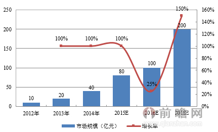 自2011年以来,我国3D产业进入了高速发展期。2012年的市场规模尚不足10亿元,而到2014年就已超过40亿元,增长幅度远远领先于世界其他国家,如表1所示。
