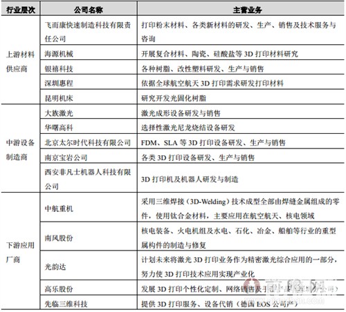 2012年10月,中国3D打印技术产业联盟成立。2014年国家出台政策支持3D发展以来,国内的中游产品制造商纷纷涉足下游服务业务或者涉足上游的材料制造业务。我国的3D打印产业进入融合发展阶段。