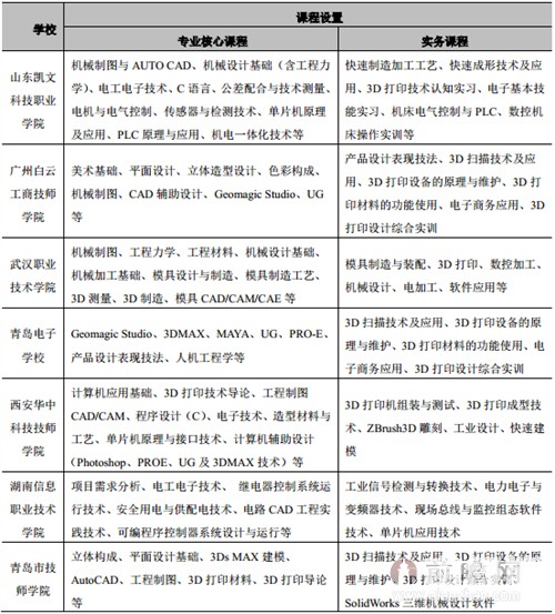 随着3D打印行业的快速发展,3D打印相关专业已成为市场热门专业,并且种类繁多。目前国内中职和高职院校都已开3D打印类相关专业。根据最新修订的《普通高等学校高等职业教育(专科)专业目录(2015年)》,部分专业设有“3D打印”、“增材制造技术”方向,如机械制造与自动化专业(增材制造技术方向)、航空材料精密成型技术专业(航空产品3D打印)等;而根据2010年修订的《中等职业学校专业目录》中,并未显示相关命名的专业。不过,随着3D打印专业人才的需求越来越多,部分中职院校已经设置了相关专业。